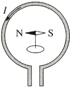 21. 如图所示,当导线环中沿逆时针方向通过电流时,小磁针最后静止时N极的指向为 ( )