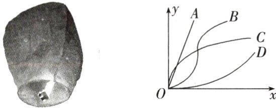 16. 春节期间人们放飞孔明灯表达对新年的祝福,如图所示,孔明灯在竖直$Oy$方向做匀加速运动,在水平$Ox$方向做匀速运动,孔明灯的运动轨迹可能为 ( )