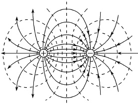 AB 该电场为等量异种点电荷的电场,将等量异种点电荷的电场线与等势面的分布图画出如图,与该题的图比较可得: