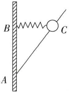 49.如图所示,一光滑杆固定在竖直墙壁上的A点,轻弹簧一端与套在杆上的小球连接,另一端固定于墙上的B点.小球静止在C点.A、B、C三点在同一竖直平面内,B、C连线水平,则( )