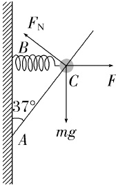 BD 小球的受力分析如图所示,弹簧对小球的弹力方向水平向右,杆对小球的弹力方向垂直于杆斜向上,B、D正确.