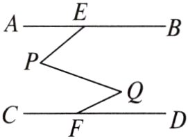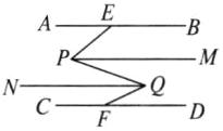 (3)$PM// QN$. 理由如下: 因为 $PM// AB$,$CD// AB$, 所以 $PM// CD$(平行于同一条直线的两直线互相平行).因为 $QN// CD$, 所以 $PM// QN$(平行于同一条直线的两直线互相平行).