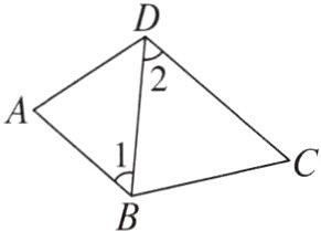 1. 如图,BD是四边形ABCD的对角线,若∠1 = ∠2,∠ADC = 100°,则∠A等于 ( )