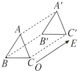 3. 如图,三角形 ABC 沿射线 OE 的方向平移一定的距离到三角形 A′B′C′,请利用平移相关知识找出图中相等的线段及三组相等的角.