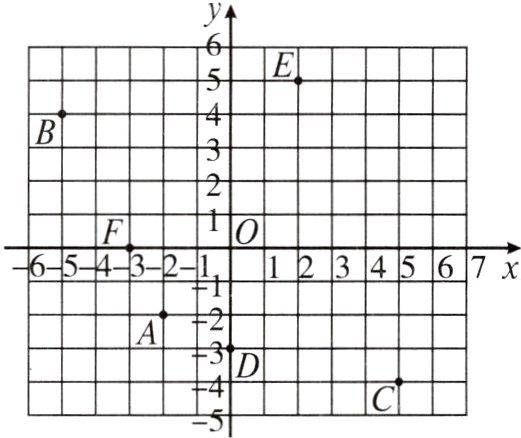 (1)A(-2,-2),B(-5,4),C(5,-4),D(0,-3),E(2,5),F(-3,0).