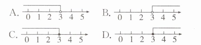 【变式】(2023保定曲阳期末)不等式x>3的解集在数轴上表示正确的是 ( )