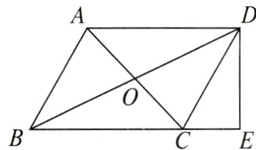 8. 如图所示,在□ABCD中,对角线AC与BD交于点O,DE⊥BC于点E,若OB = 6.5,CD = $\sqrt{41}$,DE = 5,求□ABCD的面积.