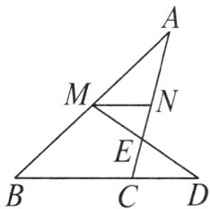 6.如图,在△ABC中,M,N分别是AB和AC的中点,连接MN,点E是CN的中点,连接ME并延长,交BC的延长线于点D.如果BC = 4,那么CD的长为__________.