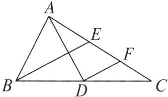 8.如图,在△ABC中,D,E分别是BC,AC的中点,BF平分∠ABC,交DE于点F,若BC = 6,AB = 10,则EF的长是__________.