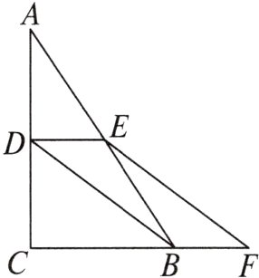 12.(2022绵阳期中)如图,在△ABC中,D,E分别是AC,AB的中点,点F是CB延长线上的一点,且CF = 3BF,连接DB,EF.若∠ACB = 90°,AC = 12 cm,DE = 4 cm.