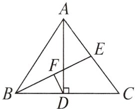 8. 如图,AD是△ABC的高线,且BD = $\frac{1}{2}$AC,E是AC的中点,连接BE,取BE的中点F,连接DF. 求证:DF⊥BE.