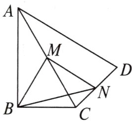 11. 如图,在四边形ABCD中,∠ABC = 90°,AC = AD,M,N分别为AC,CD的中点,连接BM,MN,BN.