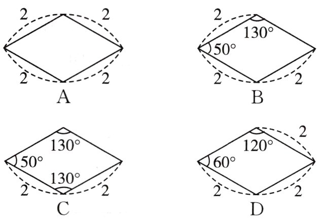 4.(2023张家口蔚县校级模拟)下列是4位同学所画的菱形,依据所标数据,不一定为菱形的是( )