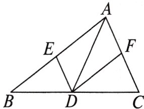 9.如图,在△ABC中,点D是边BC上的点(与B,C两点不重合),过点D作DE//AC,DF//AB,分别交AB,AC于E,F两点,下列说法正确的是( )