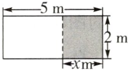 4. 如图,一长为5 m,宽为2 m的长方形木板,现在在长边上截去长为x m的一部分,则剩余木板的面积(空白部分)y(m$^{2}$)与x(m)的函数关系式为(0≤x<5) ( )
