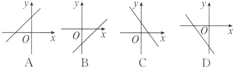 (2022保定莲池区校级期末)正比例函数$y = kx(k≠0)$的图象经过第二、四象限,则一次函数$y = x + k$的图象大致是 ( )