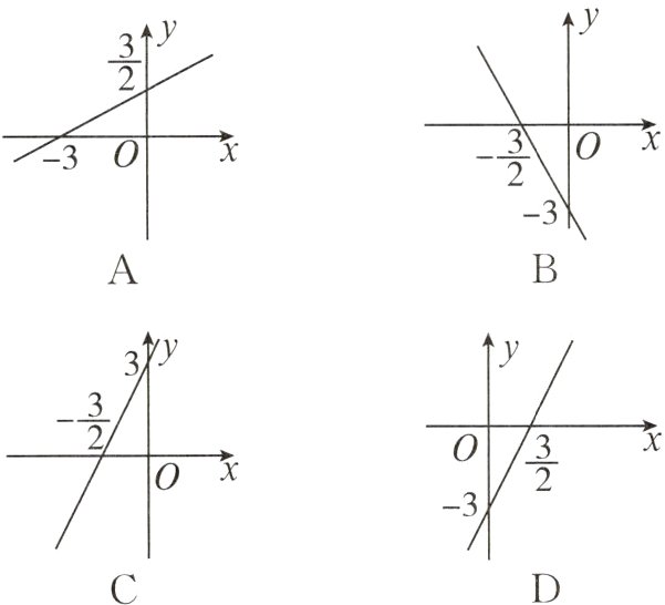 (2023通辽中考)在平面直角坐标系中,一次函数$y = 2x - 3$的图象是 ( )