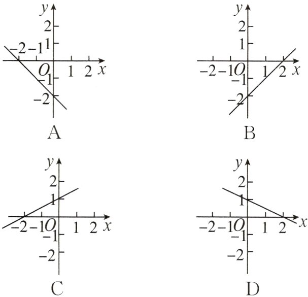 利用函数y = ax + b的图象解得ax + b<0的解集是x< -2,则y = ax + b的图象可能是( )
