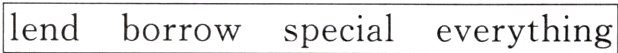 I. 1. Everything 2. borrow 3. lends 4. special