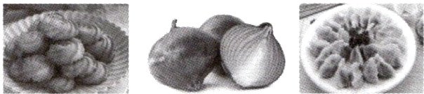 1. cabbage 2. watermelon 3. cookie 4. onion 5. dumpling 6. chips