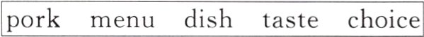 1. menu 2. pork 3. dish 4. choice 5. taste