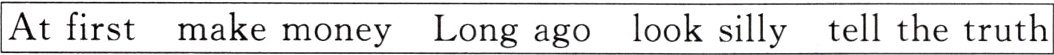 1.make money 2.At first 3.tell the truth 4.Long ago 5.look silly
