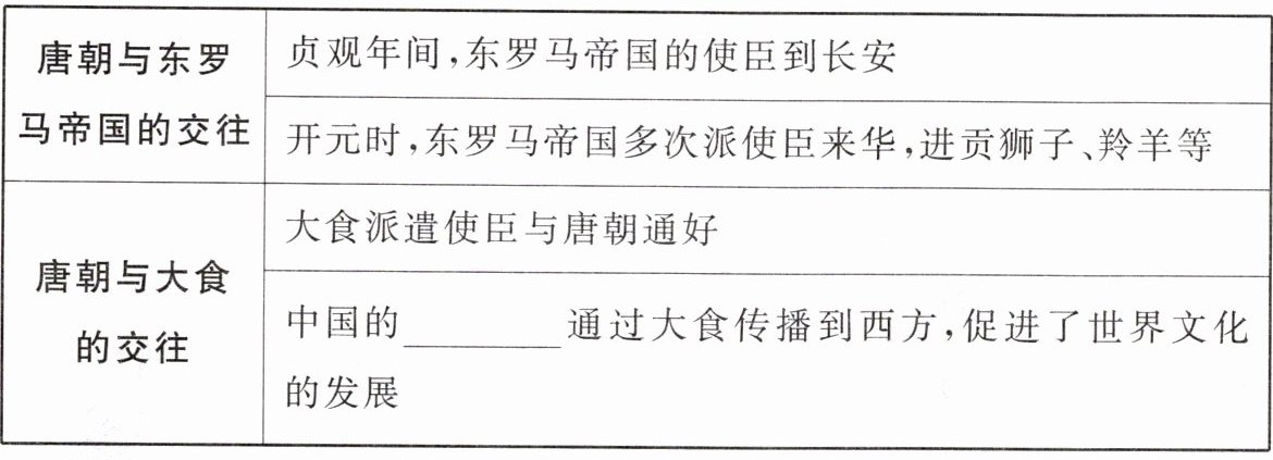 1.人员交往:新罗统治朝鲜半岛部分地区后,派遣使臣和大批________到唐朝学习中国先进的文化。其中最著名的是________。