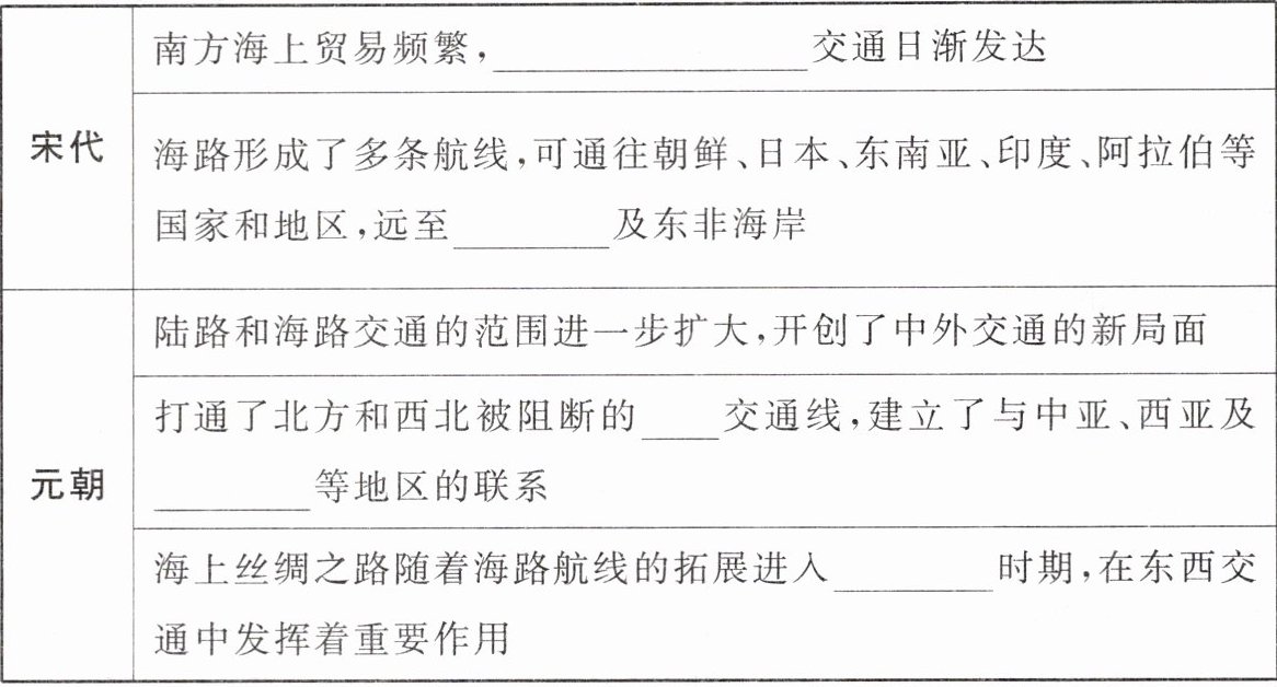 史料二 宋元时期,与前代相比,中外交通有了很大的发展。宋元海上交通发达,海外贸易繁荣。两宋海外贸易超过前代,由于陆路和海路的畅通,中国的创造发明输往西方,天文、历法、农业、手工业生产技术传入欧亚各国,对欧亚国家的社会、经济发展起了重要作用。