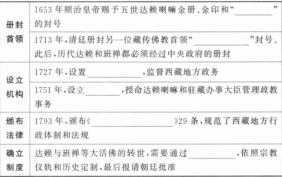 3. 妥善安置:1771年,蒙古族土尔扈特部在首领______的领导下,克服重重困难,返回新疆,得到清政府的妥善安置。