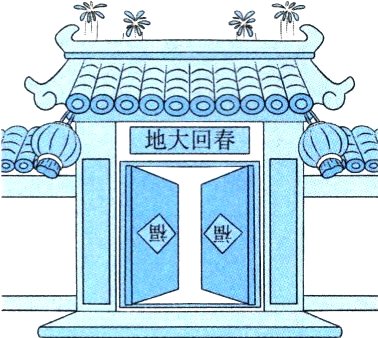 2. 请你向长辈请教春联的贴法,帮小萌把所选春联的上联和下联贴在右图中门口两侧的空白处。(填序号)