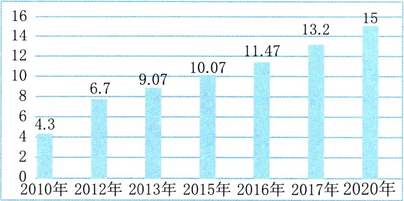 3.(示例)2010—2020年中国红色旅游年接待人数逐年上升。