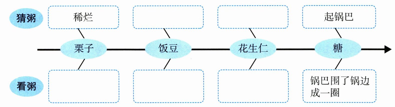 1. (练要素·详略得当)八儿是怎么猜粥的?他看到的粥又是怎样的?提取关键词句填一填。