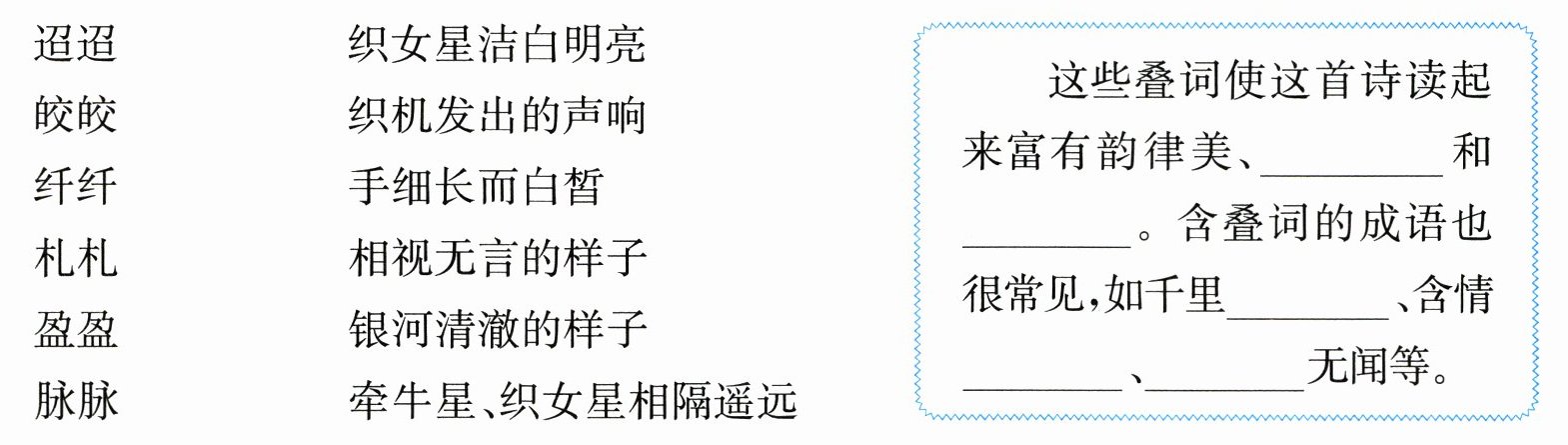 2. 诗中的叠词细腻地描绘了事物的种种情态,渲染了气氛,抒发了情感,请你连一连。
