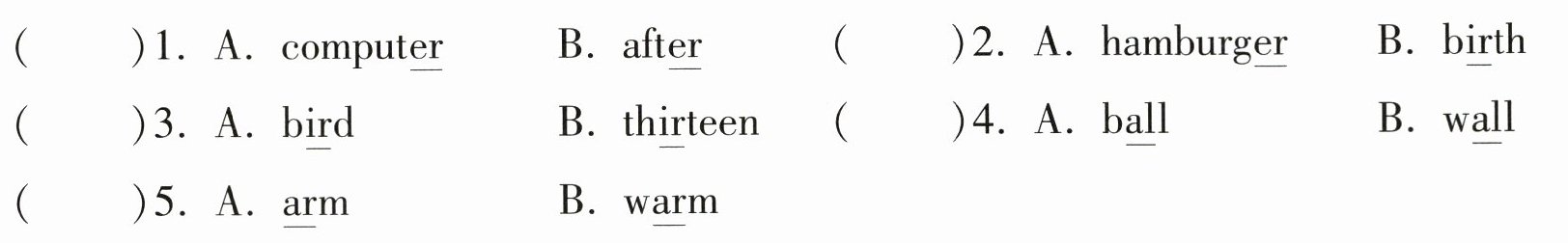 五 判断下列每组单词中画线部分的发音是(T)否(F)相同。
