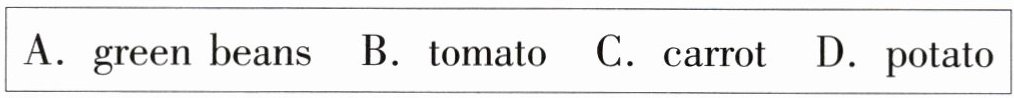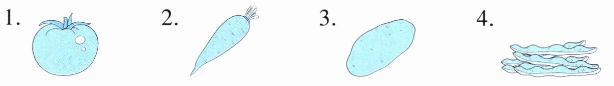 1. green beans 2. tomatoes 3. carrots 4. potatoes