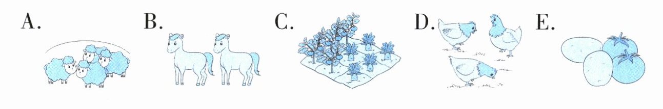 1. vegetable 2. sheep 3. An 4. colour 5. horses