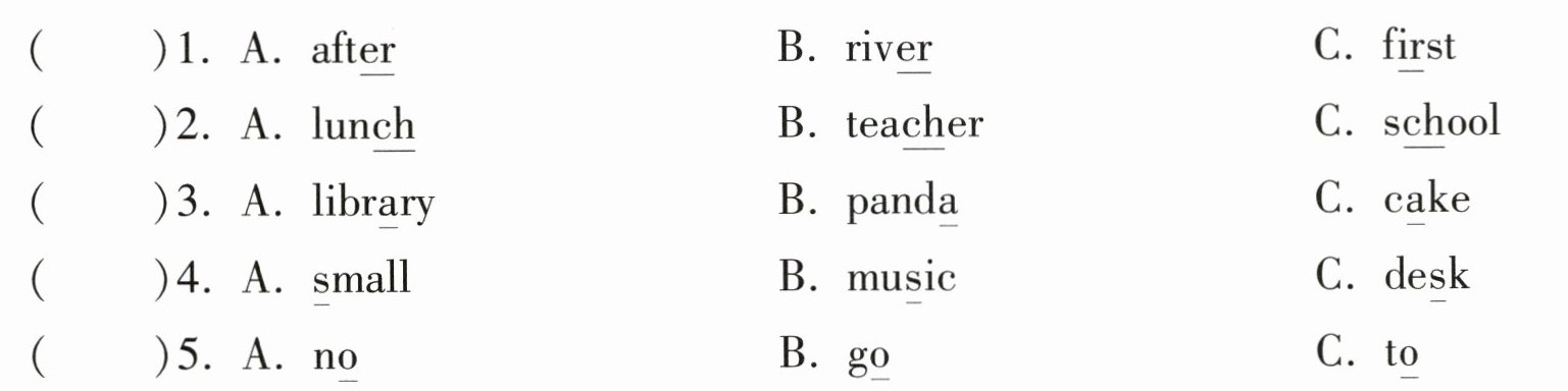 五、选出下列每组单词中画线部分发音不同的一项。