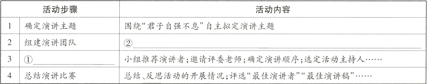 (2)(4分)①确定演讲步骤 ②成立活动组委会,讨论制定计划