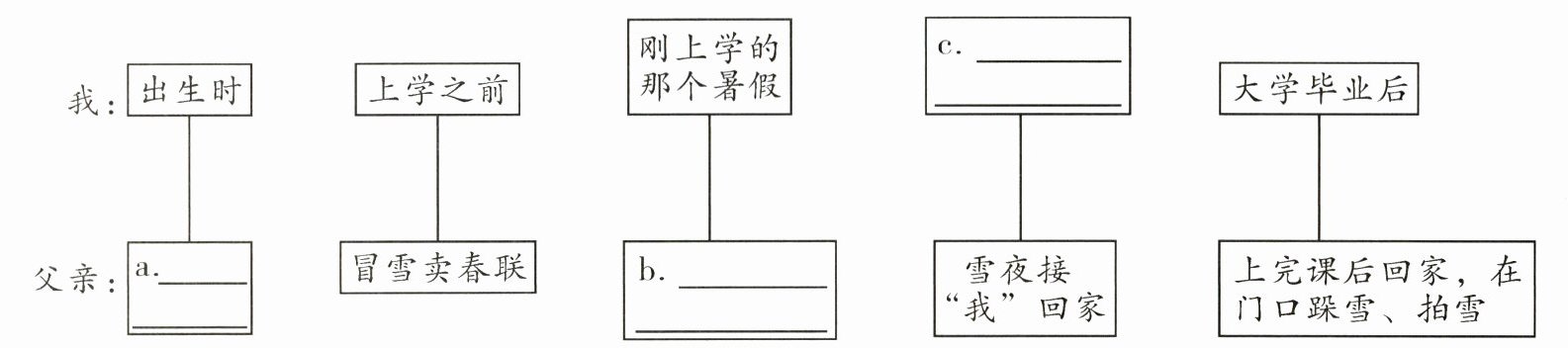 5. 老师带领同学们对文章进行梳理后,发现文中父亲的活动大多与“雪”有关,请填写下面表格。(3分)