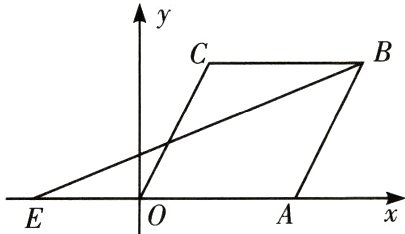 21. 如图,在平行四边形$OABC$中,$A(3,0)$,$B(5,4)$,点$E$是$x$轴负半轴上的一个动点,当$\triangle ABE$的面积等于平行四边形$OABC$的面积时,试求点$E$的坐标.