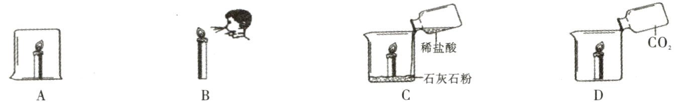 A.吹灭蜡烛 B.用灯帽盖灭酒精灯