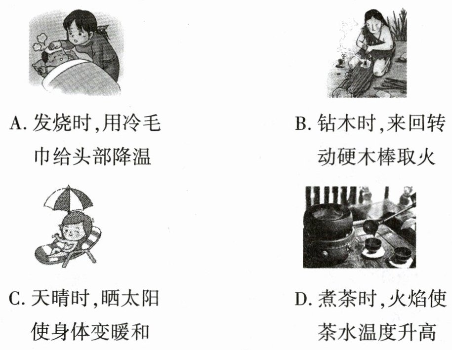 1. 如图所示现象中,利用做功使物体内能增加的是( )