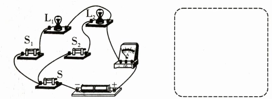 16. 如图所示电路,开关 S 闭合后,发现 A₁、A₂两只电流表的指针恰好转到同一位置,若通过 L₁的电流为 0.8 A,则电流表 A₁的示数为_______A,电流表 A₂的示数为_______A.