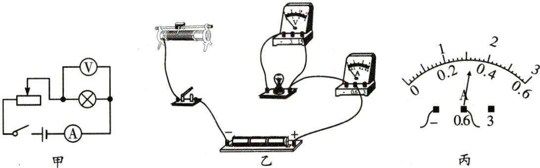 (3)排除电路故障后,下表是按正确的操作测得的数据,其中第一次测得的电流如图丙所示,则电流表示数为________A。从表中数据可看出,通过灯泡的电流与灯泡两端的电压不成正比,其原因是______________________________。