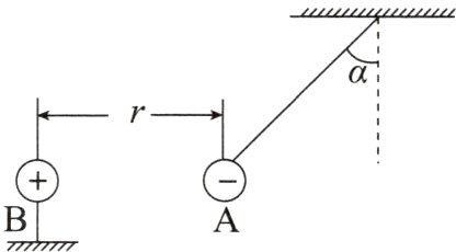 5. 如图所示,把一电荷量为Q = -5×10⁻⁸ C的小球A用绝缘细绳悬起,若将电荷量为q = +4×10⁻⁶ C的带电小球B靠近A,当两个带电小球在同一高度相距r = 30 cm时,绳与竖直方向的夹角α = 45°,g取10 m/s²,k = 9.0×10⁹ N·m²/C²,且A、B两小球均可视为点电荷,求: