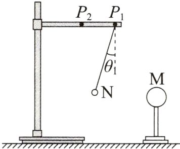 2. 如图所示,一个带正电的球体M放在绝缘支架上,把系在绝缘丝线上的带电小球N先后挂在横杆上的P₁和P₂处。当小球N静止时,丝线与竖直方向的夹角分别为θ₁和θ₂(θ₂图中未标出)。则( )