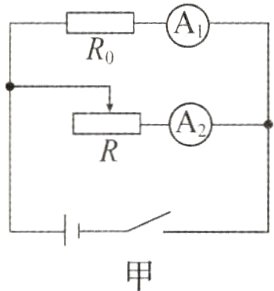 某同学发现上述器材中虽然没有电压表,但给出了两个电流表,于是他设计了如图甲所示的电路完成实验。