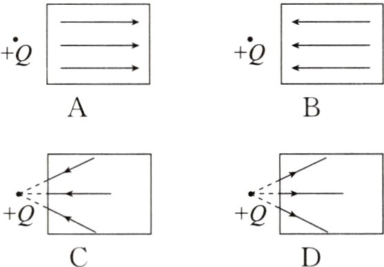 【例 1】如图所示,一个方形的金属盒原来不带电,现将一个电荷量为+Q 的点电荷放在盒左边附近,达到静电平衡后,盒上的感应电荷在盒子内部产生的电场分布情况正确的是 ( )