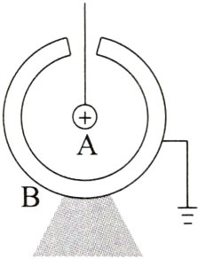 3. 如图所示,把原来不带电的金属壳 B 的外表面接地,将一带正电的小球 A 从小孔中放入金属壳内,但不与 B 接触,达到静电平衡状态后,则( )