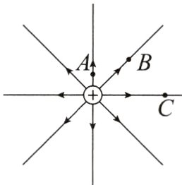 【例3】如图所示,在点电荷形成的电场中有$A$、$B$、$C$三点,它们到点电荷的距离分别为$r_{A}$、$r_{B}$和$r_{C}$,且$r_{B}-r_{A}=r_{C}-r_{B}$。用$E_{A}$、$E_{B}$、$E_{C}$表示$A$、$B$、$C$的电场强度,用$U_{AB}$表示$A$、$B$之间的电势差,用$U_{BC}$表示$B$、$C$之间的电势差,则下列说法正确的是 ( )